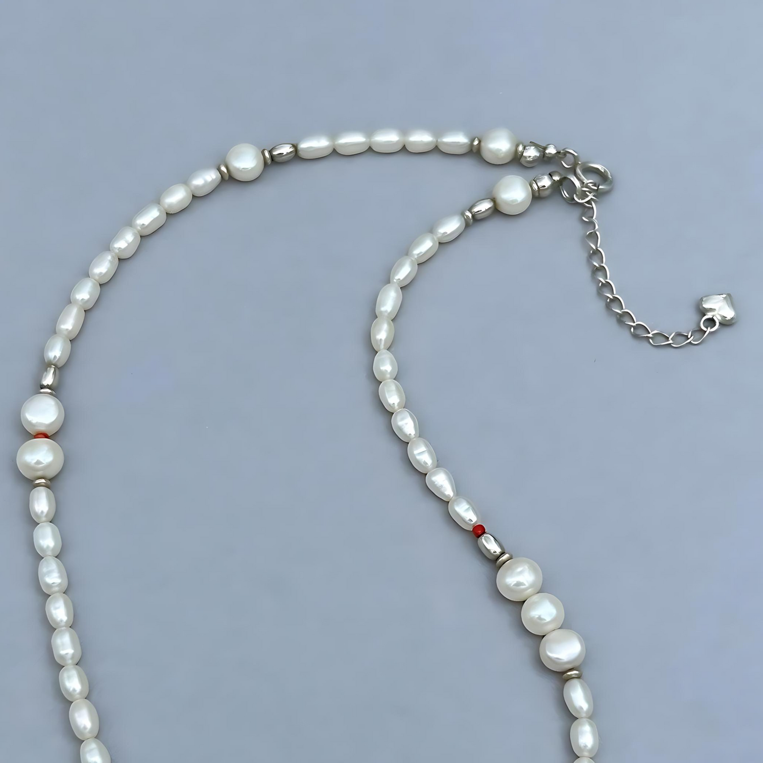 Vous voudrez porter ce collier tous les jours. Ce collier de perles est tout sauf démodé. Il est délicat et attire les regards. Composé de perles blanches de culture de forme ovale et ronde et de détails délicats en corail. En pièce maîtresse, une perle baroque soigneusement choisie lui donne une touche unique.